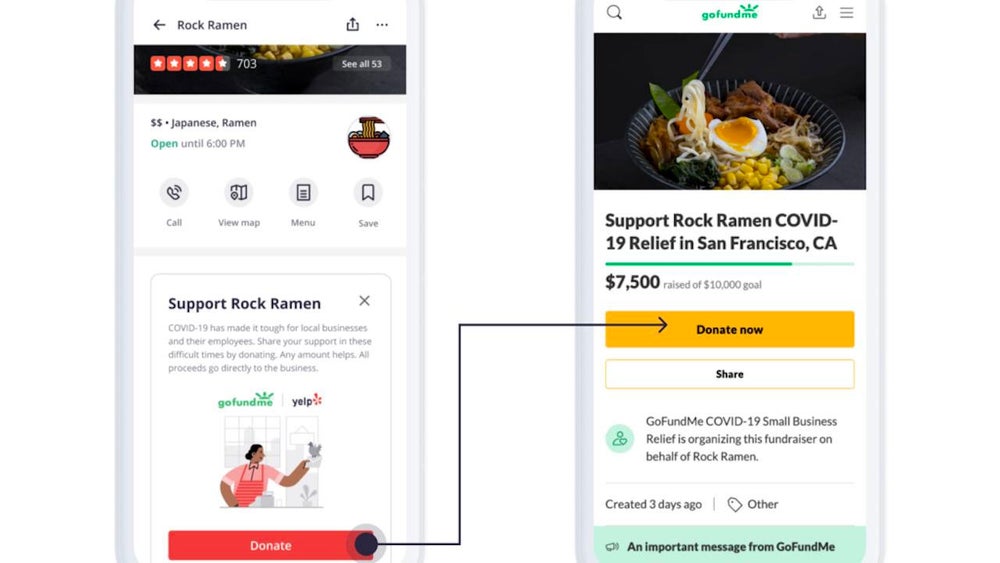 Businesses forced to shut down or scale back during the COVID-19 pandemic are getting a little help from their friends at Yelp and GoFundMe. Independent operators can now launch fundraisers and accept donations directly through their Yelp profile.